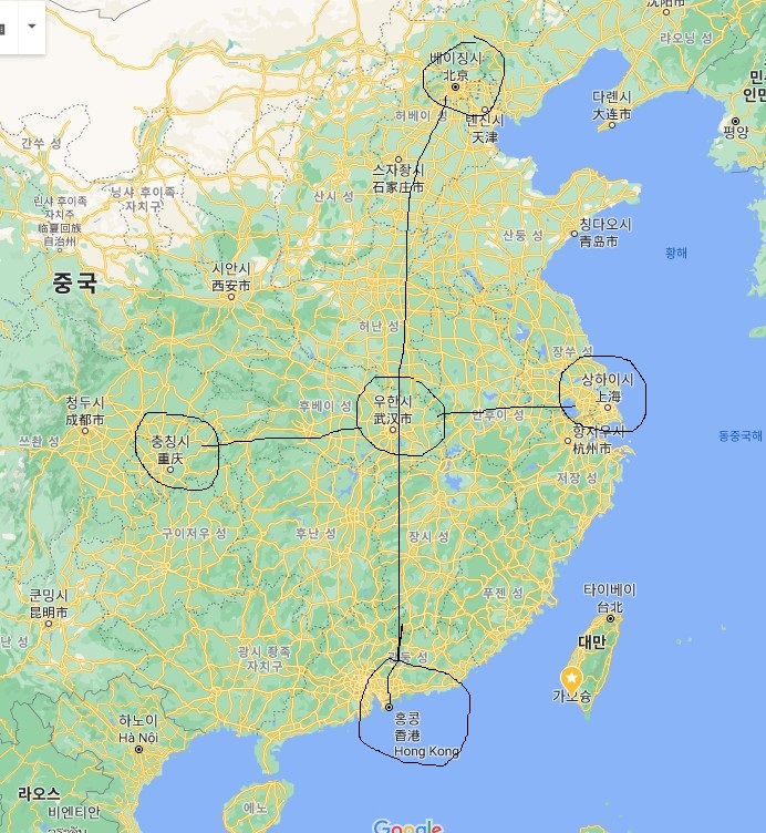 중국은 땅넓이도 크고 인구도 많아서 떠오르는 여러 대도시가 많을 텐데요. 우한은 그중에서도 베이징, 상하이, 광저우 다음으로 거대한 규모를 자랑하는 도시입니다. 베이징과 광저우 그리고 충칭과 상하이로 이어지는 중국 경제의 십자축의 교차점에 있는 도시라 교통의 요지이기도 하고, 특히 북쪽에선 양번쪽에서 오는 한수와 남쪽에서 올라오는 장강이 만나는 곳이 우한 한복판이라 수륙교통에서 중요한 지점입니다. 인구가 1000만이 넘는 메가 시티지요.