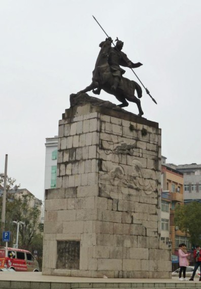 높이 3.4미터의 조자룡 동상은 당양시를 상징하는 랜드마크지요. 뒤편에는 장판파 공원이 있는데 당 양 시내 서쪽의 경사진 언덕 위에 서있습니다. 과거 유비군과 조조 군이 전투를 벌였던 것을 기념해 1930년대 공원으로 조성했다고 합니다. 공원에는 조자룡을 모셔놓은 자룡각과 조자룡, 장비의 활약상을 부조로 재현했는데 썩 인상적이지는 않았습니다.